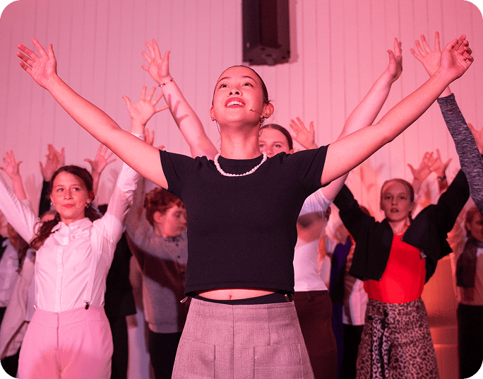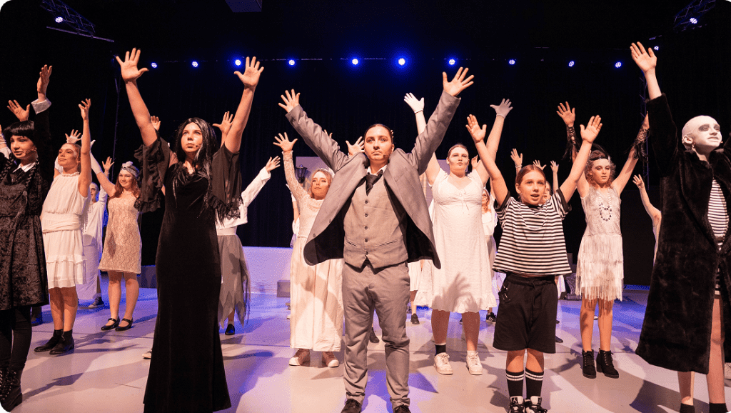 Our workshops are school holiday performing arts programs that run over 5–6 days. Students rehearse a full musical and perform it live at the end of the week — complete with costumes, lighting, and applause!